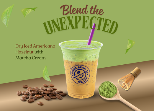 Proof that the best flavor comes from unexpected pairings Come try it for yourself and see what happens when you blend the unexpected. Dry Iced Hazelnut Americano with Matcha Cream Cap. Try Now!